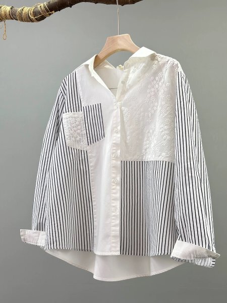 > c 2508 フリーサイズ ワイシャツ チュニック トップス ナチュラル 綿100% 通気性肌触り抜群 サラサラ ストライプ2