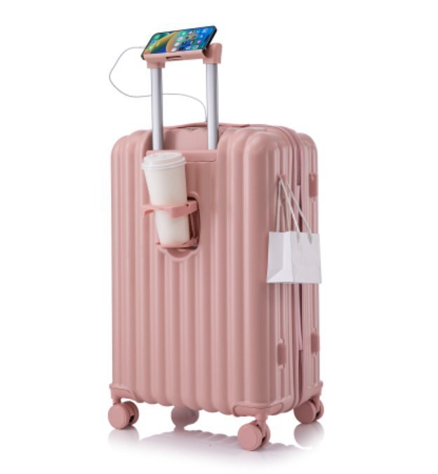 - スーツケース 機内持ち込み 軽量 キャリーバッグ M サイズ USBポート付き ドリンクホルダー付 ダブルキャスター スムーズ 静音 静か