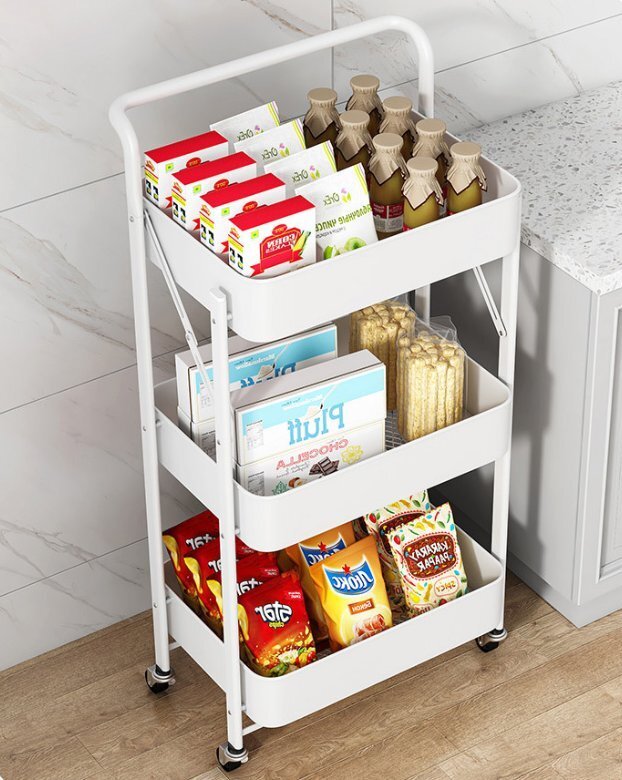 - 折りたたみラック多層収納ラックカートスナック菓子ベッドサイド取り付け不要可動収納ラック
