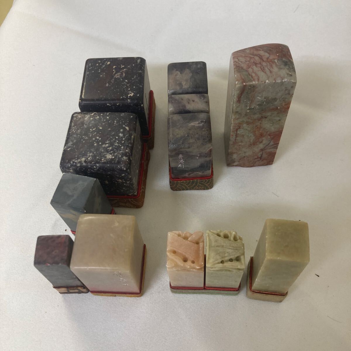 - 【印材 12個まとめ】印章 印鑑 彫刻 石印材 レトロ【B7-4①】0814