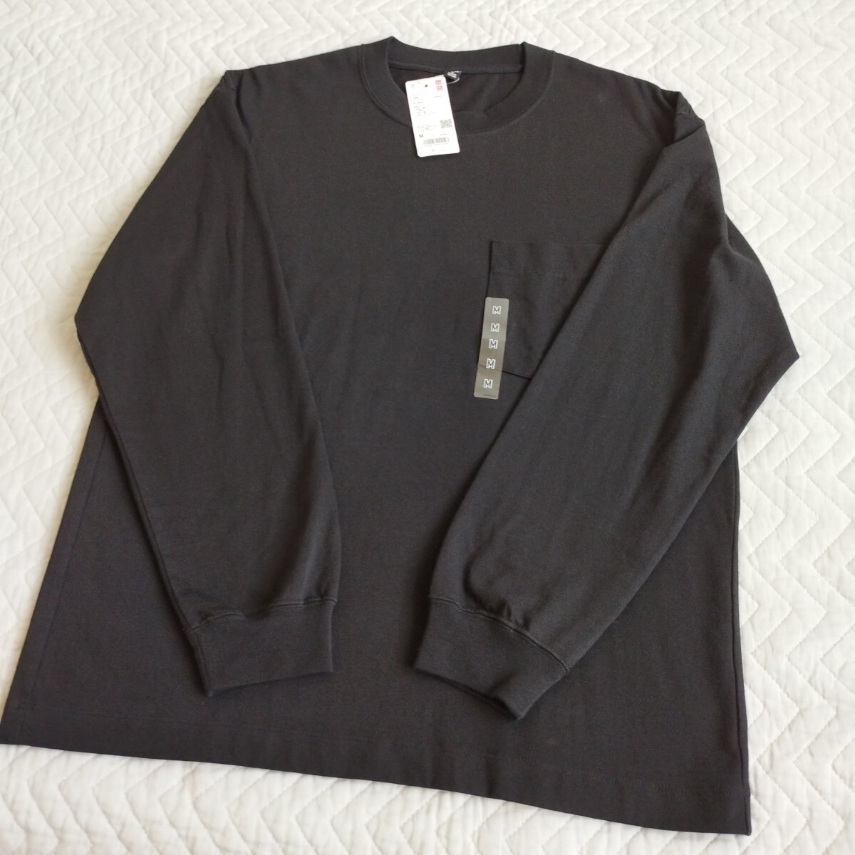 - 1点のみ 未使用 ユニクロ ウォッシュコットンクルーネックTシャツ 長袖 Tシャツ メンズ M 幅57 丈69 胸ポケット 黒 匿名 送料無料