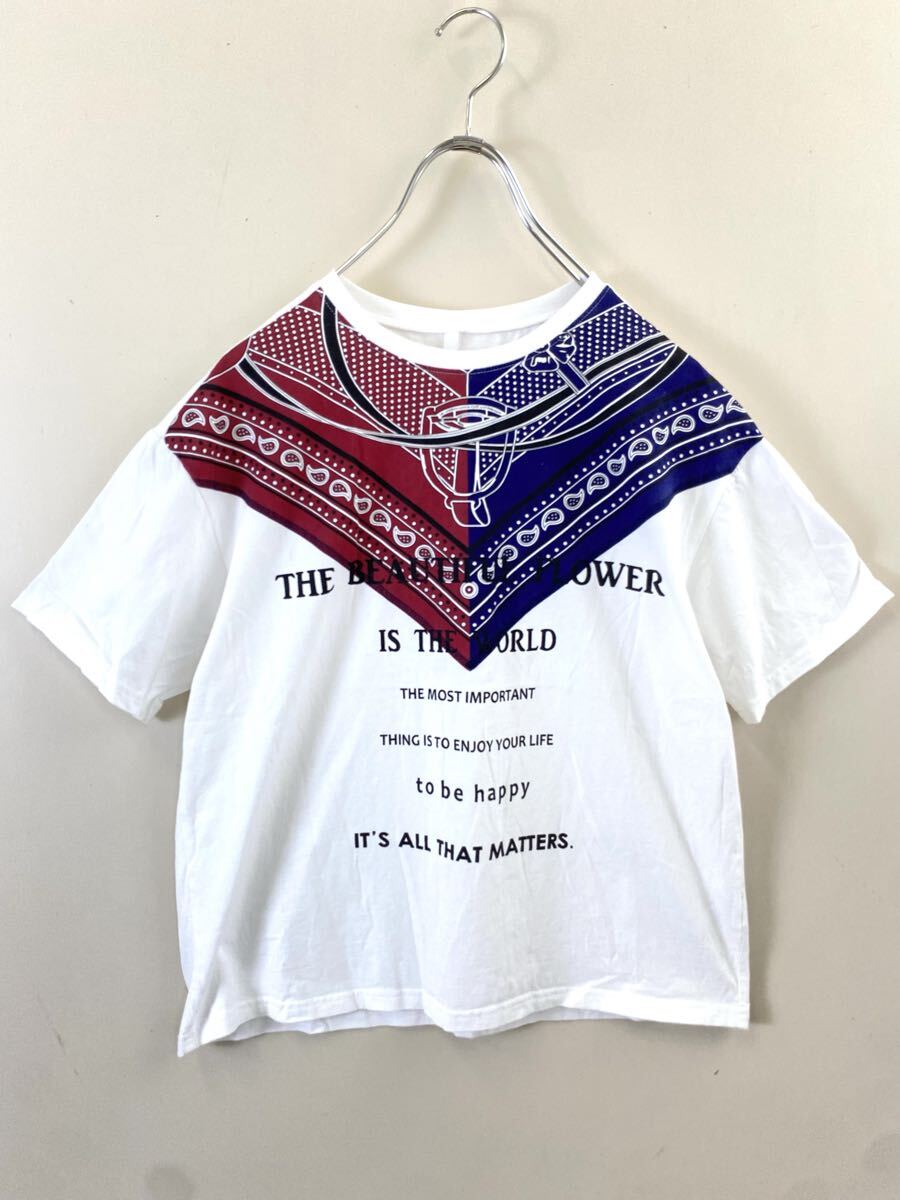 - ● Dignite collier *オーバーサイズ* バンダナ柄 Tシャツ 白 ◆ ペイズリー 半袖 カットソー ディニテコリエ ◆W21 Gや0BI-14