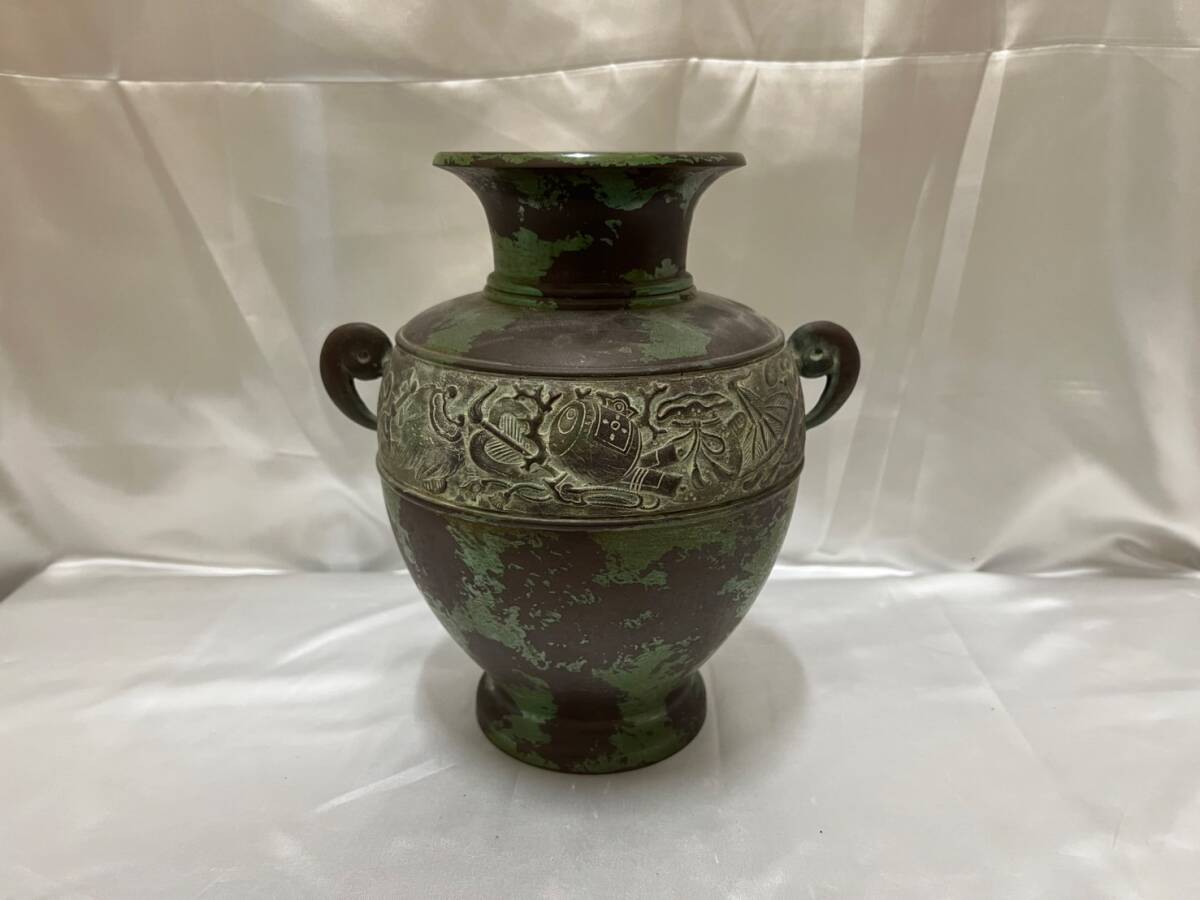 - 【勝峰 】 鋳銅 双獣耳 花瓶 高さ約26cm 花入 花生 花器 華道具 7B0815