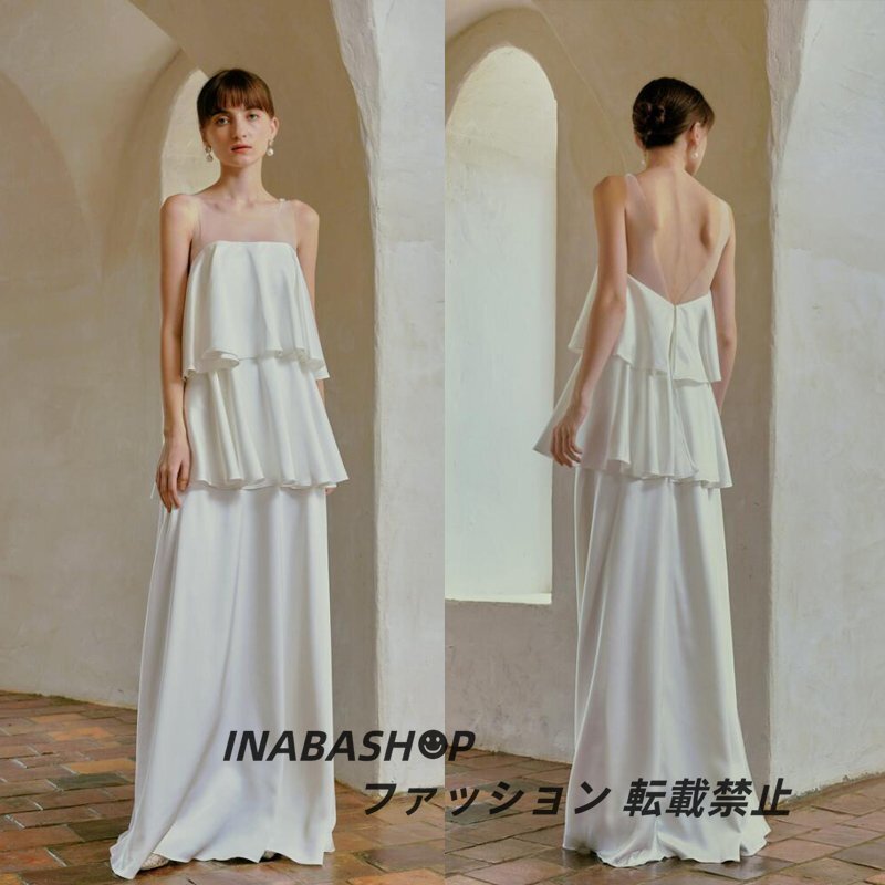 - ノースリーブ ウエディングドレス ウェディングドレス スレンダーライン床付きタイプファスナータイプ 披露宴 結婚式演奏会 海外挙式ドレス