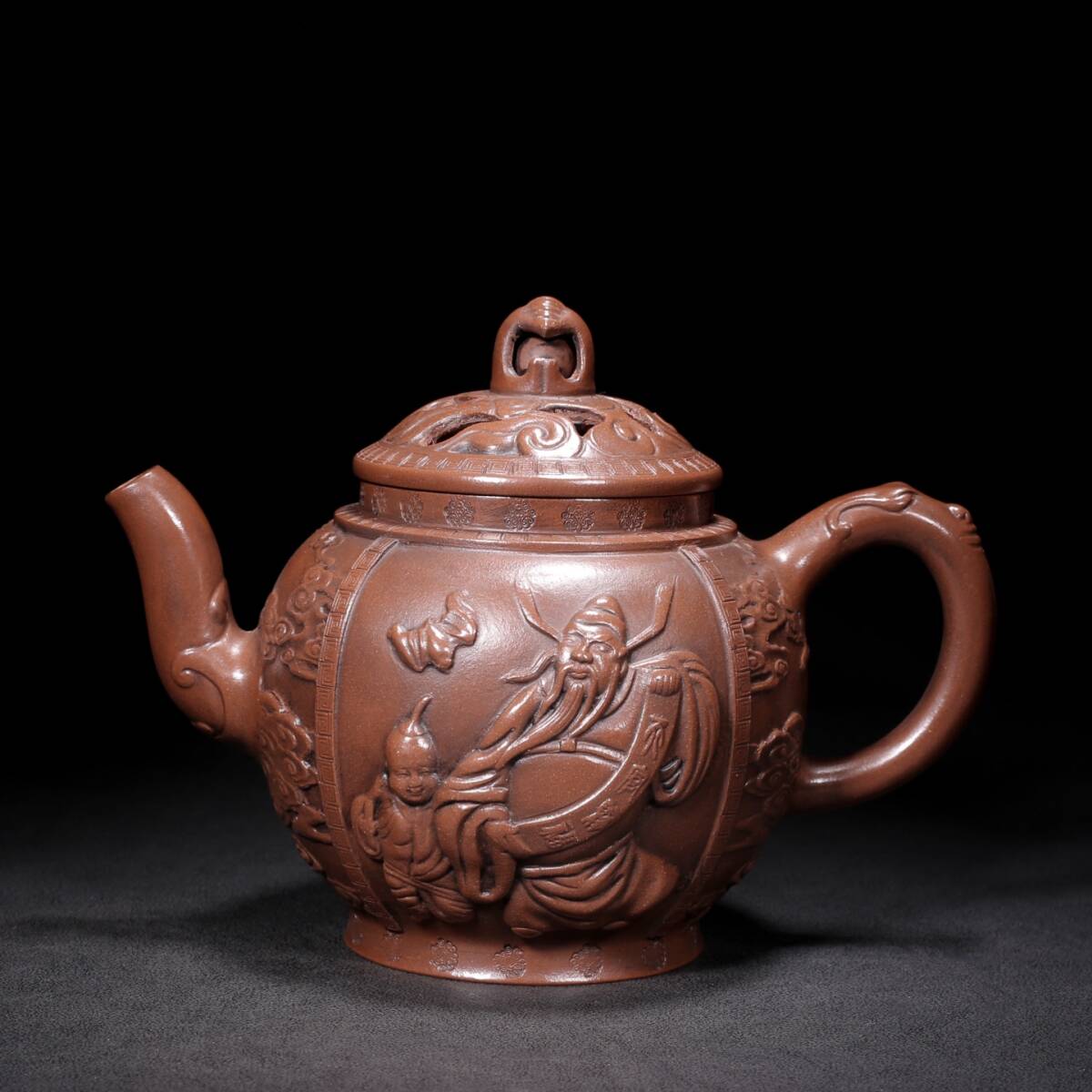 - 友人旧蔵 古原鉱底槽清製 福玲瓏壺 大清乾隆年製款 紫砂壺 精品壺 急須 煎茶道具 茶道具 古賞物 古美味 東洋彫刻 時代物 骨董 中国古美術