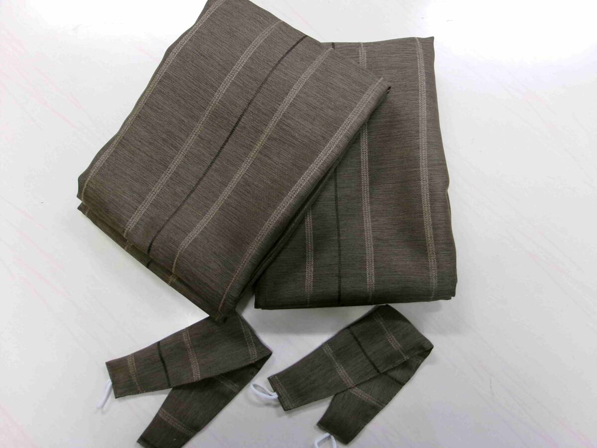 > 遮光カーテン2枚組 巾100×高さ178cm 遮光3級 洗濯機可能 しっかりした生地 残反で製作品 ブラウン系の地に縦じま KR35-1A