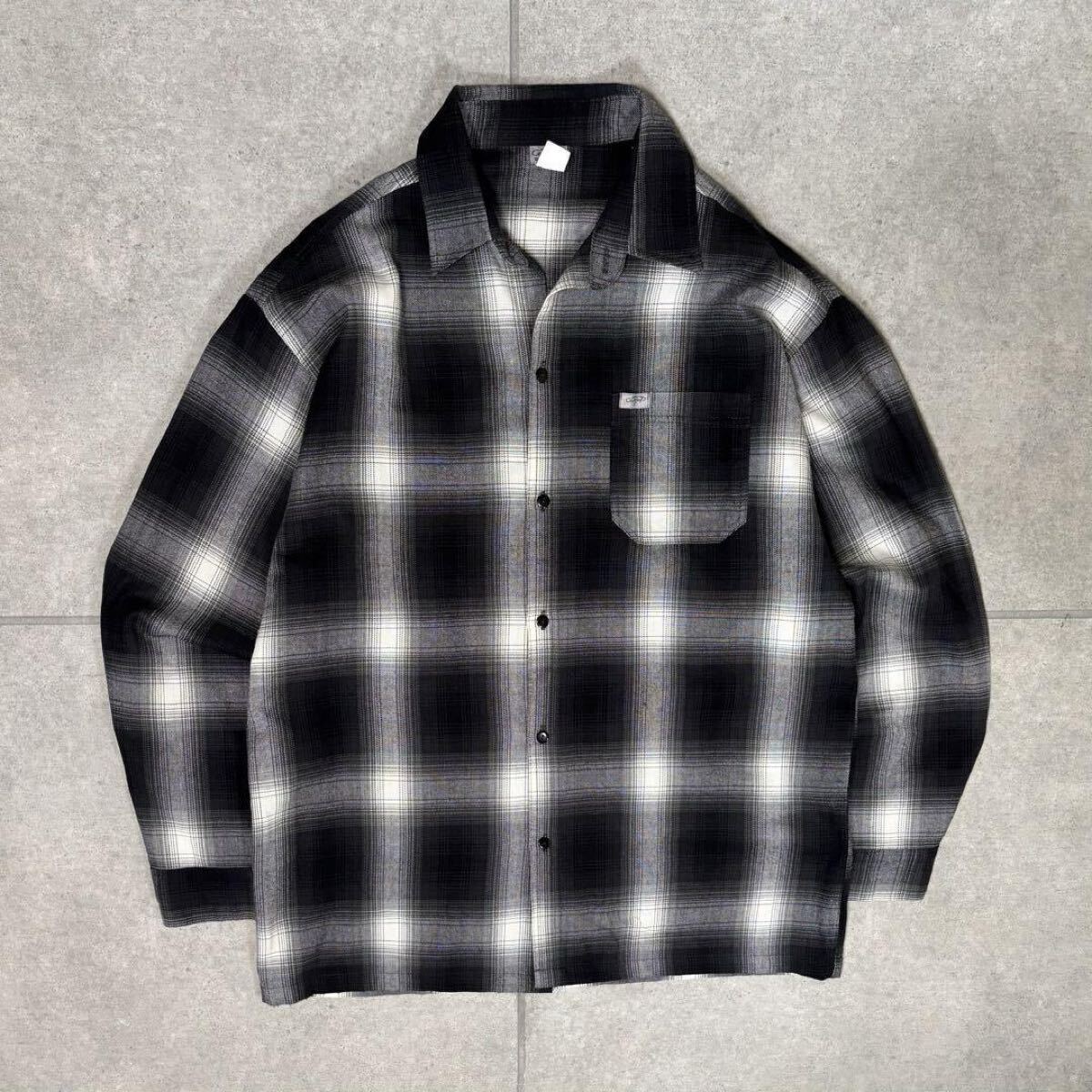 > CALTOP 長袖シャツ ネルシャツ 90s USA製 オンブレチェック 当時物 キャルトップ 西海岸 ボックス型 ブラック ホワイト XL