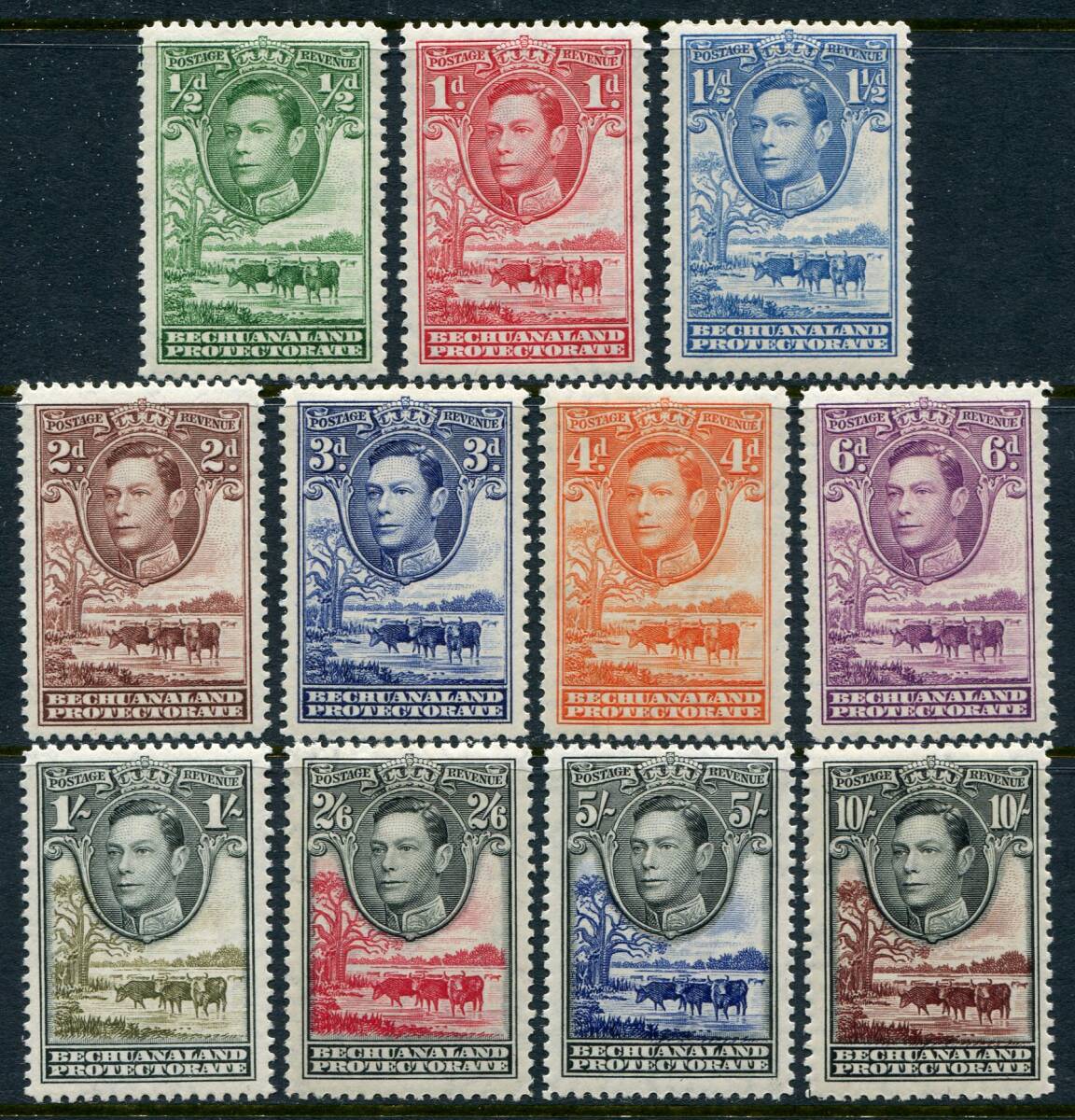 - 英領ロングセット ベチュアナランド SC:124-136 1938年 ジョージ6世 11種完 未使用 z9738