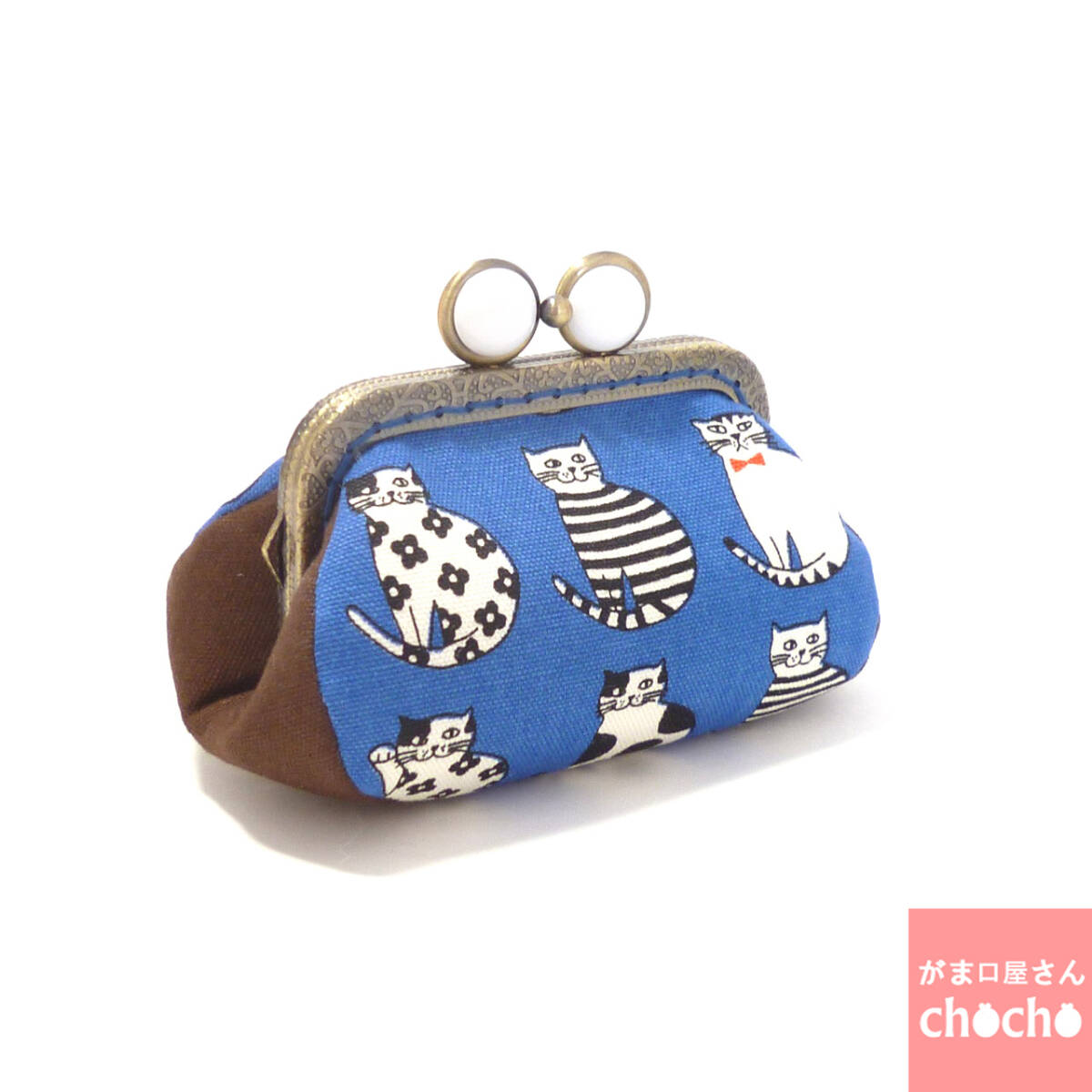 - おすまし猫さん ブルー がま口小銭入れ 猫柄 コインケース ハンドメイド G563