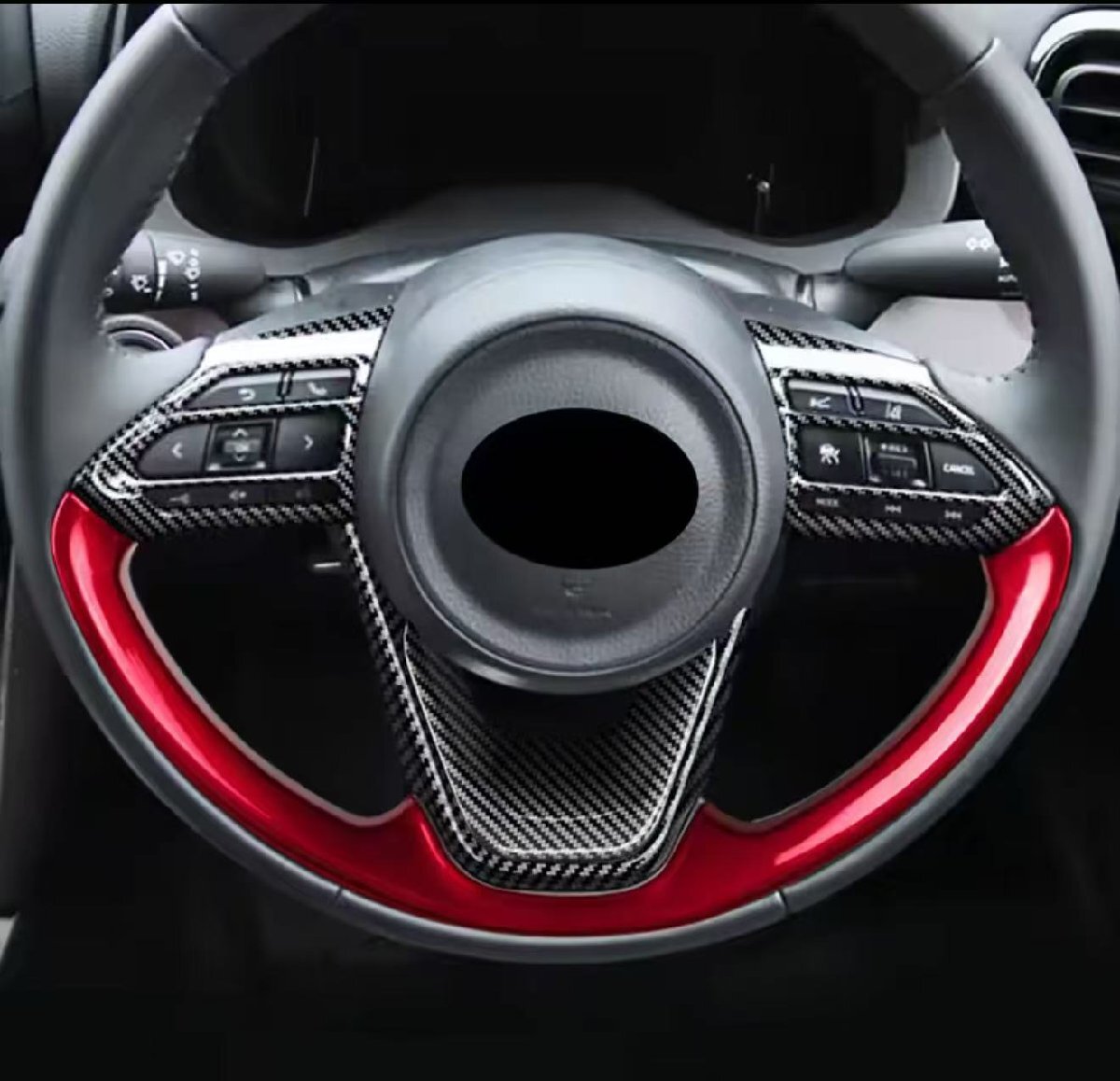 > スポーティ全開♪ カーボン ルック ステアリング パネル カバー ヤリス KSP210 MXPA10 MXPA15 MXPH10 MXPH15 X G Z ハイブリッド
