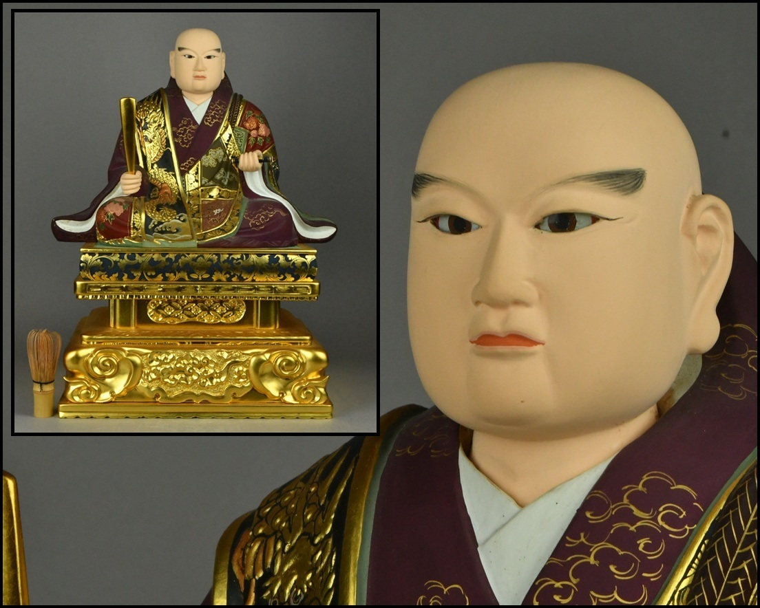 - 【ACT】仏教美術 時代物 特大 木彫 彩色 玉眼 日蓮聖人 仏像 古美術品 高さ52cm A7-807-58