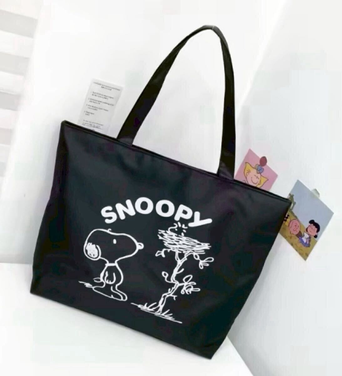 - 【新品未使用】SNOOPY スヌーピー トートバッグ 大きめ ブラック 黒