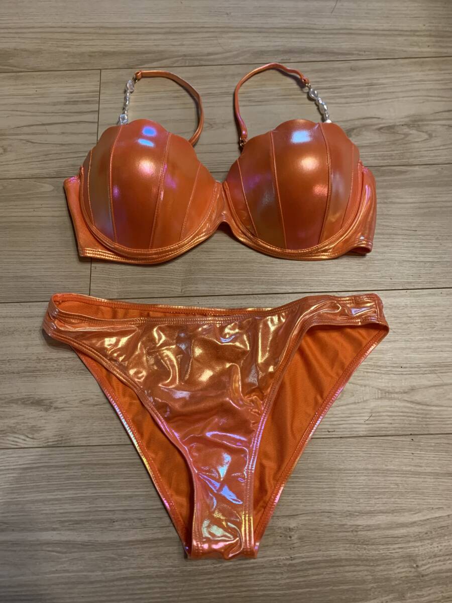 - 新品 ワイヤー ビキニ 水着 パレオ付 メタリック オレンジ系 / 大きいサイズ F80Lくらい