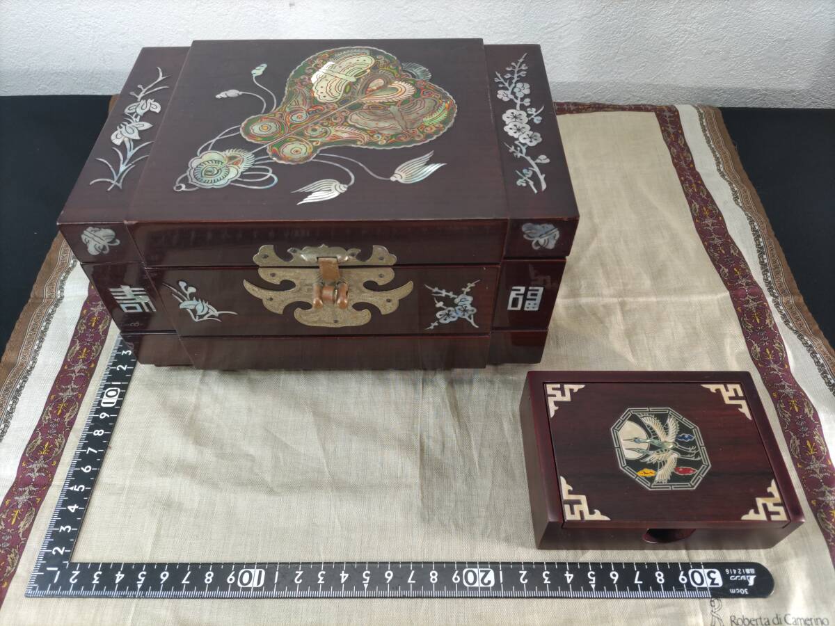 - ■送料無料!■まとめて■螺鈿細工・宝石箱・W21.5cm■ジュエリーBOX■カード・名刺入れ■韓国伝統工芸品■2点セット!