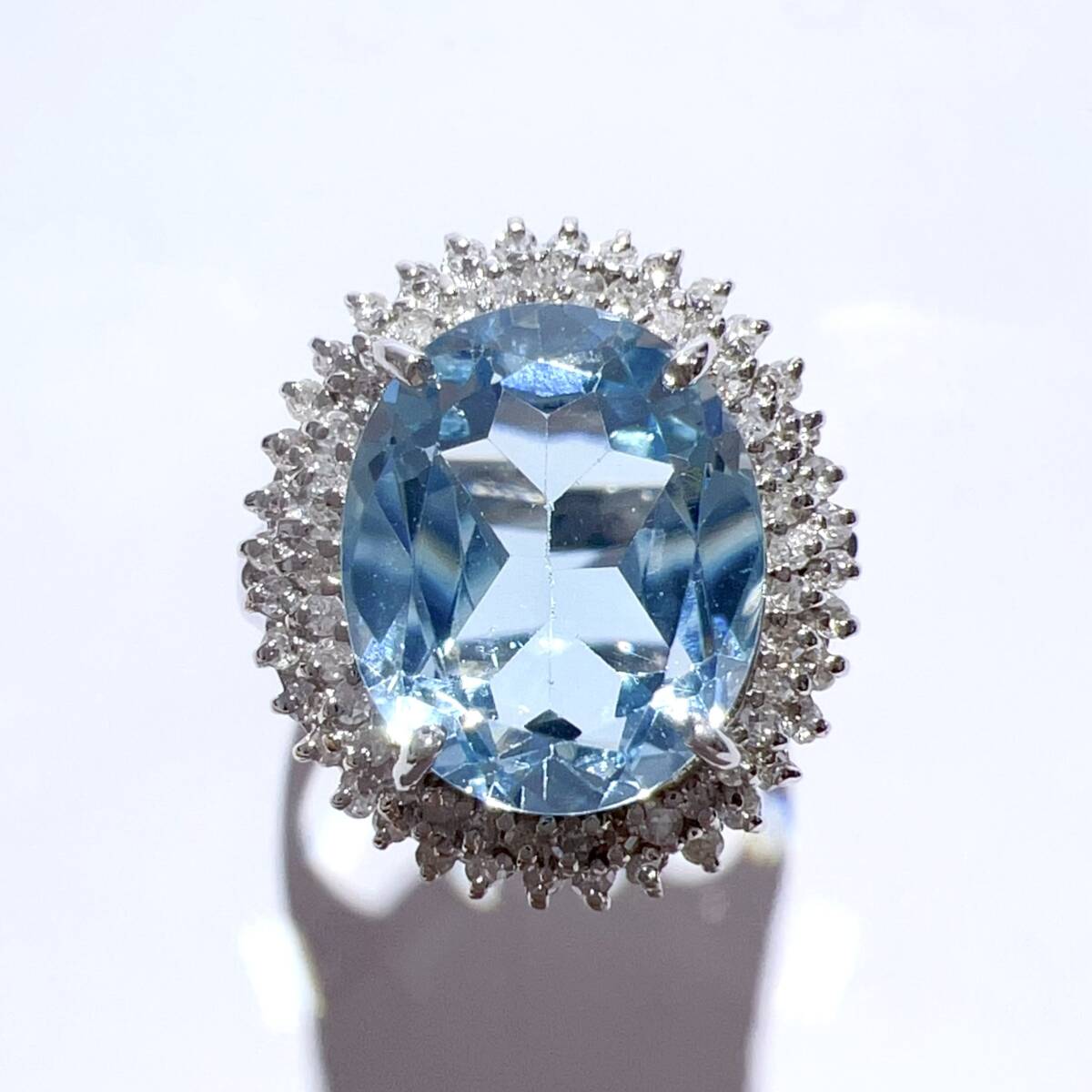 - Pt900 天然 アクアマリン ダイヤ リング AQ5.62ct 7.5g 13号 レディース アクセサリー 指輪 美品