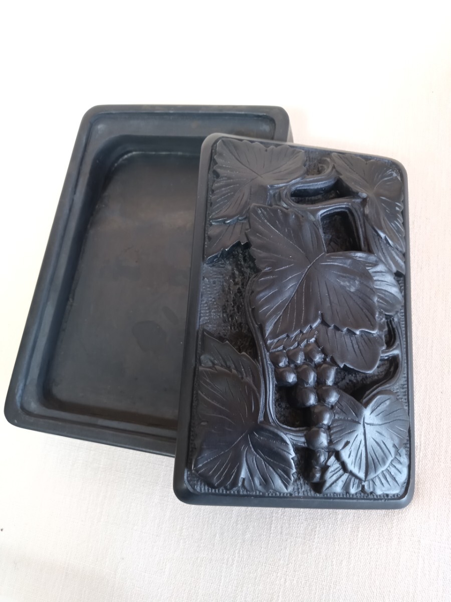 - 13226 ★★ 蓋付き彫り硯 ぶどう柄