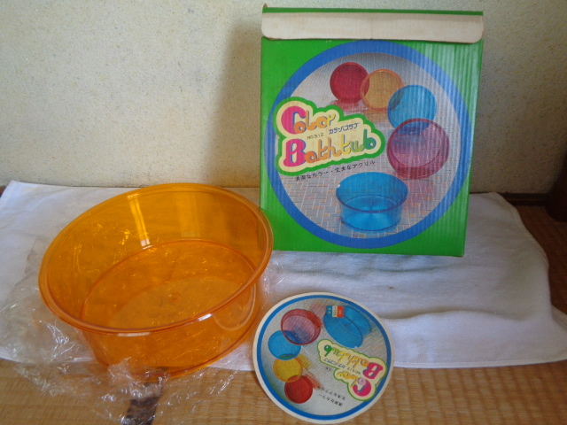 - 昭和レトロ 風呂桶・フロオケ/Color Bathtub-カラーバスタブ/入浴タライ・湯浴み桶/アクリル製/入浴道具/黄色/箱入未使用美品-長期保管品