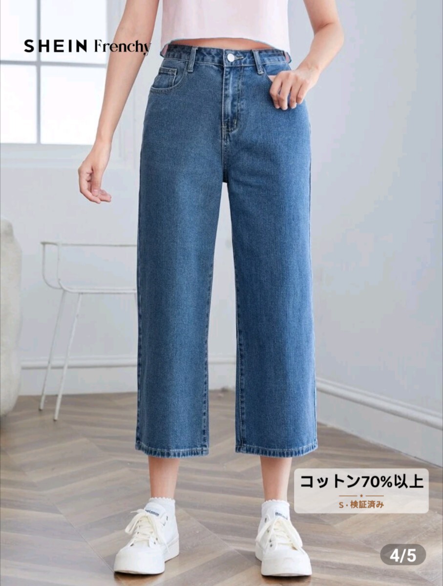 - 新品★SHEIN Frenchy ジッパーフライ ワイドレッグ クロップ ジーンズ クロプト 半端丈 L★送料185円