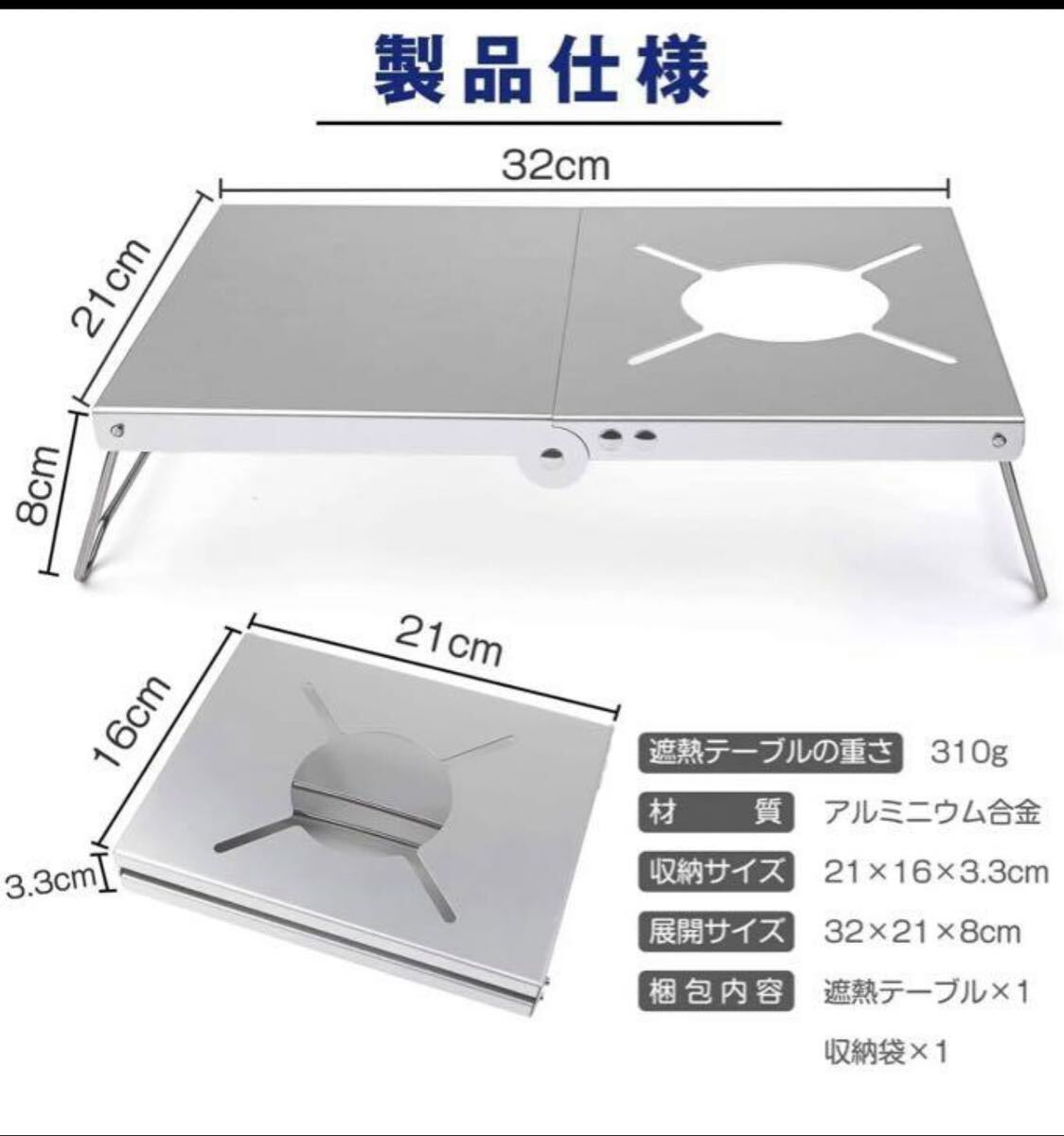 - 遮熱テーブル 遮熱板 シングルバーナー用 テーブル 軽量 折り畳み コンパクト キャンプ用品 ソト SOTO ST-310/CB-JCB/TRB-250 収納袋付き