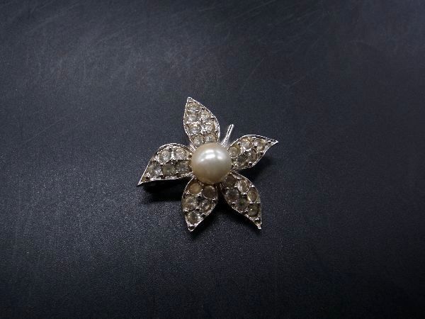 > NINA RICCI ニナリッチ ラインストーン パール ブローチ ピンバッジ アクセサリー シルバー系×ホワイト系 DH2162