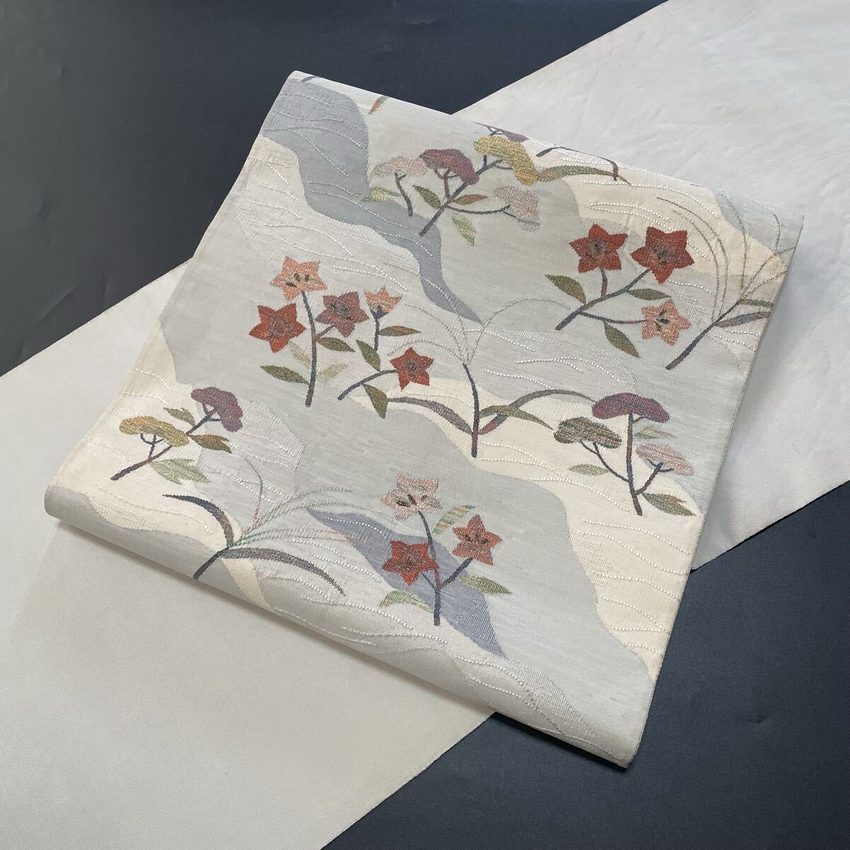 - #H806 袋帯 六通 綴織 金糸 桔梗 松 正絹 和装 和服 【wellriver】