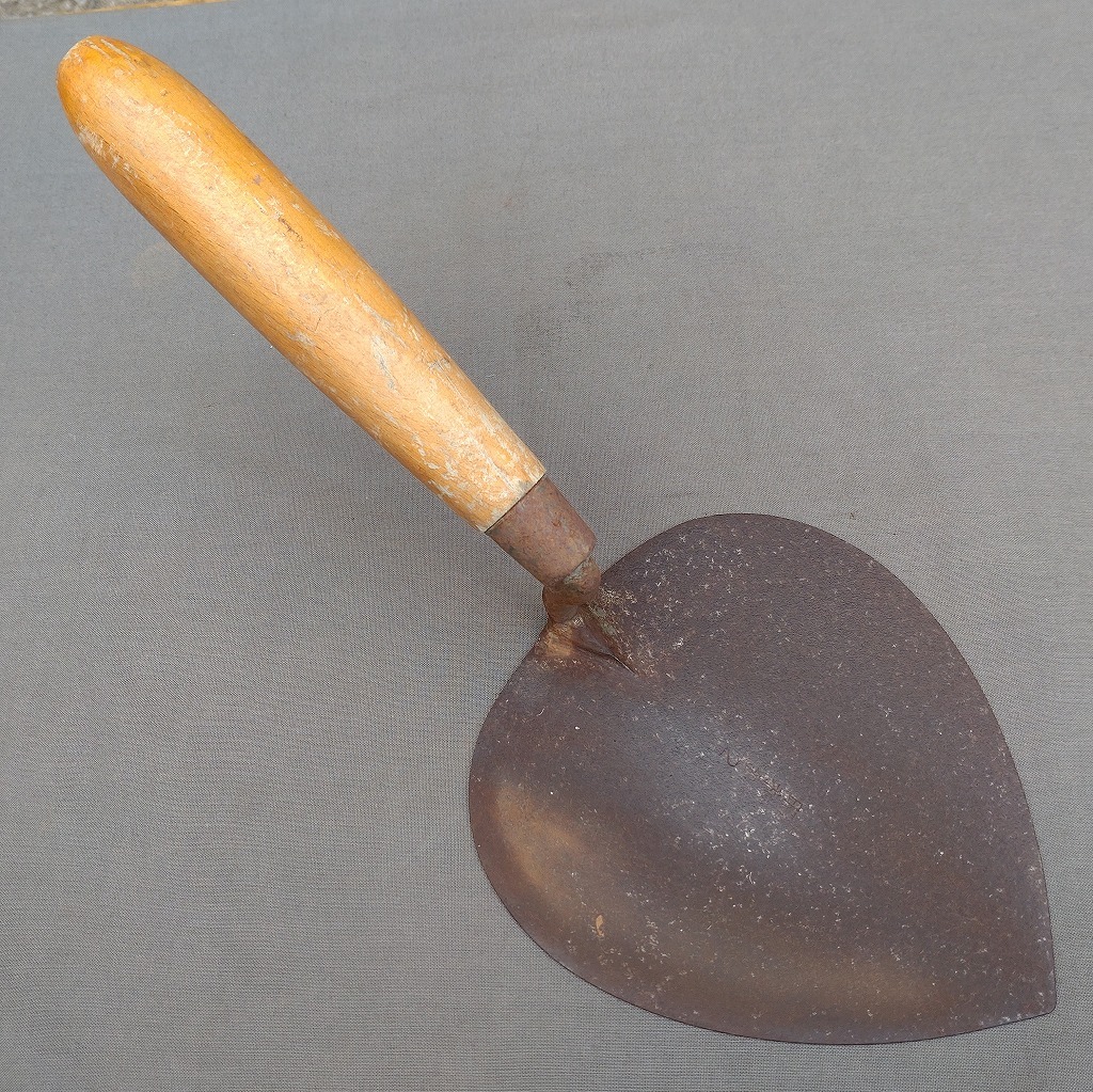 - 煉瓦鏝 桃鏝 昭和鋼 2 鏝の長さ約165㎜ 最大幅約148㎜ レンガ鏝 こて コテ 左官鏝 左官道具 日本製 【4422】