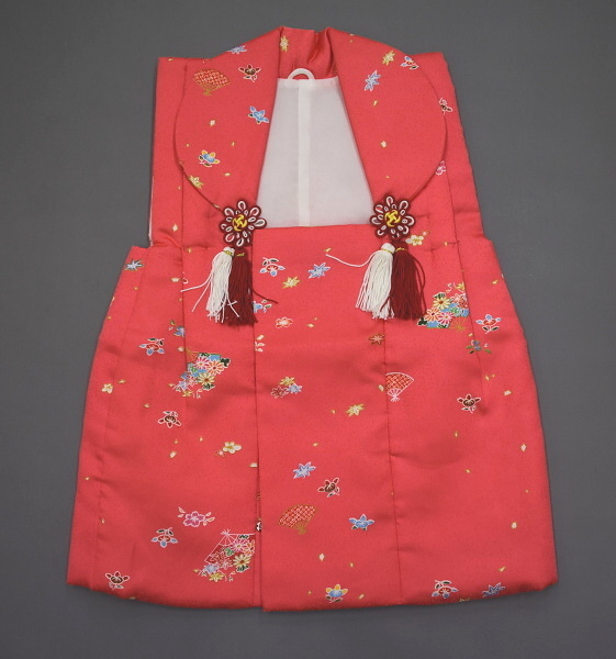 - A50-18【凛々】即決 中古品 ポリエステル 女児 被布 被布コート ピンク 扇子 花