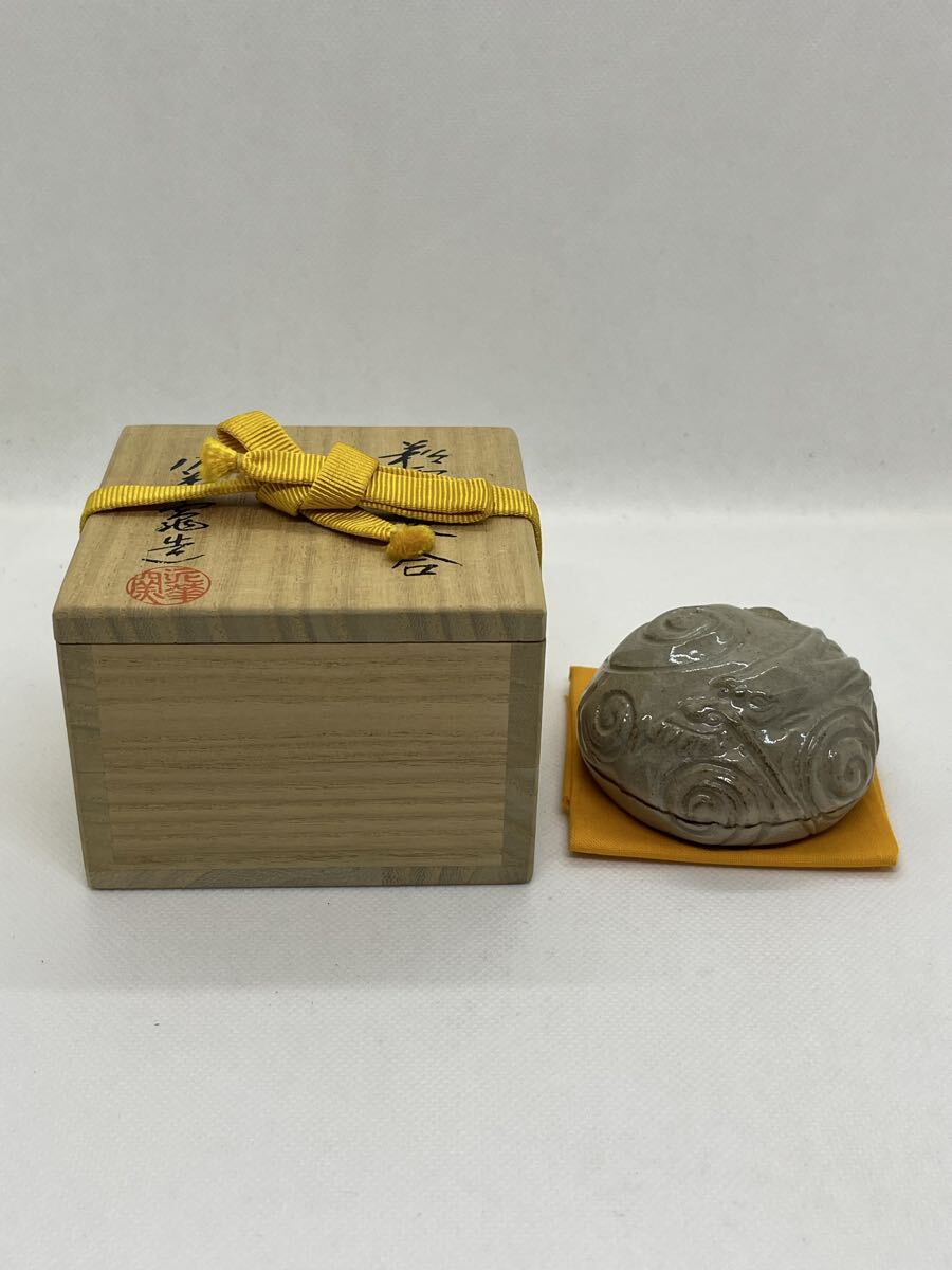 - 茶道具 泥華窯造 萩焼 萩雲龍香合 二千年記念 坂田泥華 共箱