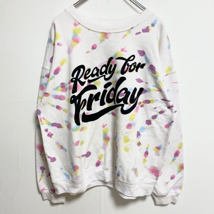 - 古着 used 長袖ロゴプリントスウェット トレーナー クルーネック ペンキペイント 白 ホワイト 秋冬服 個性的