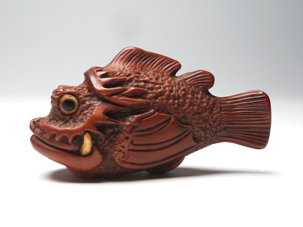 - 【11425】明治期 堤物 木製 魚 タイヤ付 根付(初品・買取品)