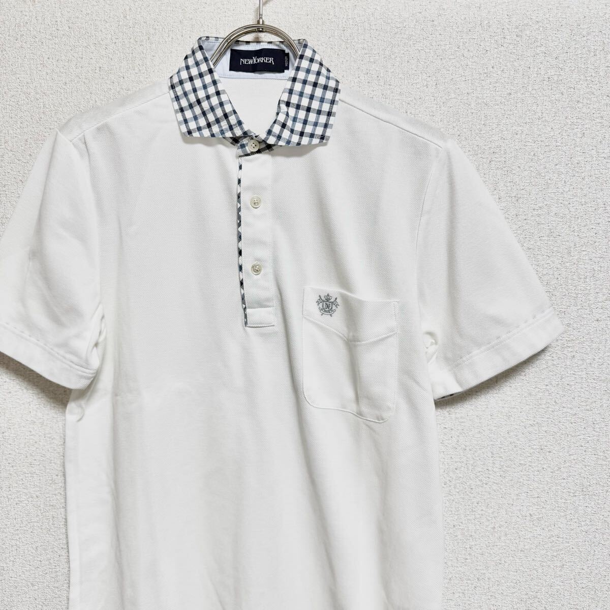 - NEWYORKER ニューヨーカー 半袖ポロシャツ カットソー プルオーバー チェック ホワイト レディース サイズ M *1