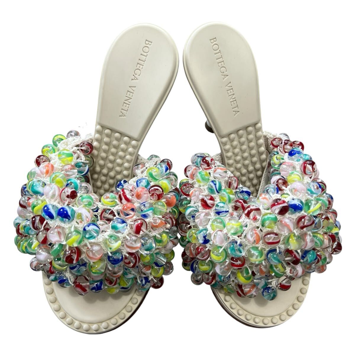 - BOTTEGA VENETA “Marble Beads” ハンドビーズ ニットミュール(アイボリー×マルチ/イタリア製/箱・保存袋付)ヒール サンダル 美品