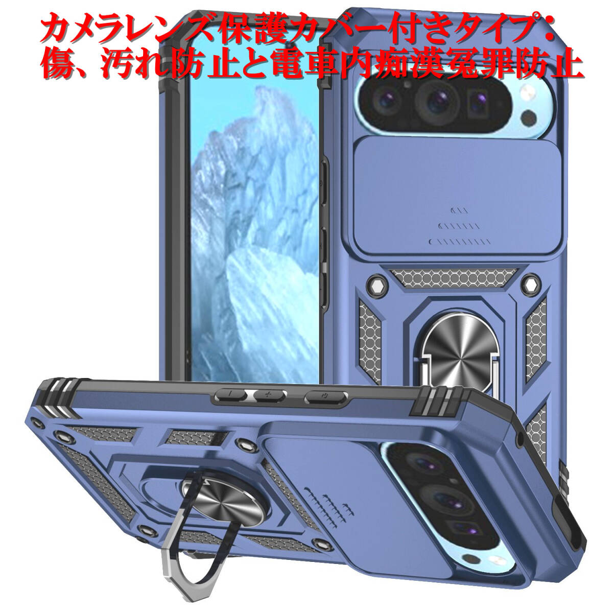 > G 青 Google Pixel 9 / Pixel 9 Pro ケース 本体 カバー 指リング 画面 保護 守る グーグル ピクセル 米軍 衝撃 頑丈 スタンド ホルダー