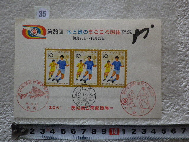 - 第29回国体 1974年 3貼3消 多種印 水と緑のまごころ国体記念 古賀郵便局特製●25●