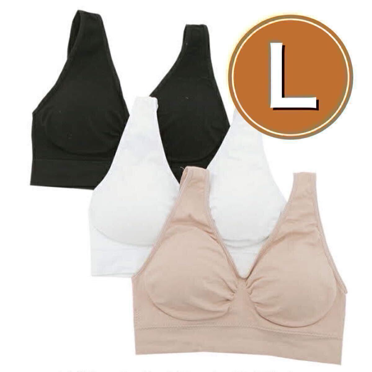 > ノンワイヤー ブラジャー 3枚セット Lサイズ ブラック 黒 ホワイト 白 ベージュ 肌色 ナイトブラ スポーツブラ 授乳ブラ D70 E70 C75 D75