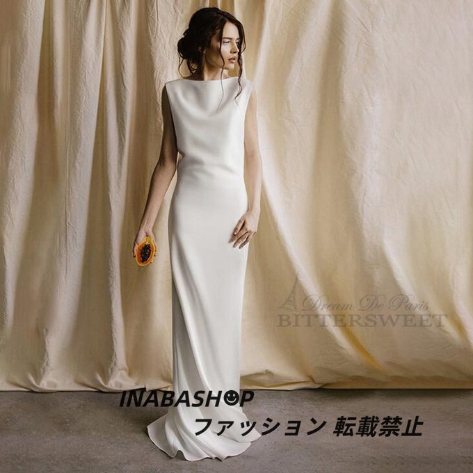 - ノースリーブ ウェディングドレス スレンダーライン ウエディングドレス ファスナー トレーン 前撮り 後撮り 披露宴 結婚式 海外挙式ドレス