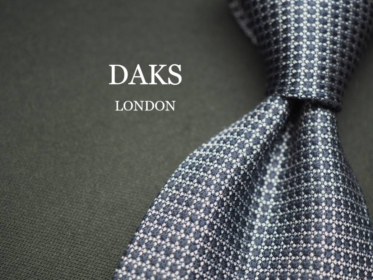 - 美品【DAKS ダックス】 F1522 ネイビー系 SILK ブランド ネクタイ 古着 良品