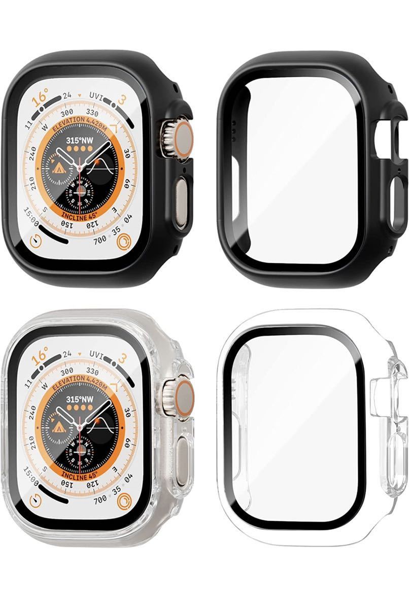 - 2枚Apple Watch Ultra 用 ケース 49mm アップルウォッチウルトラ カバー 保護カバー 一体型 全面保護 9H硬度 ガラスフィルム 黒とクリア