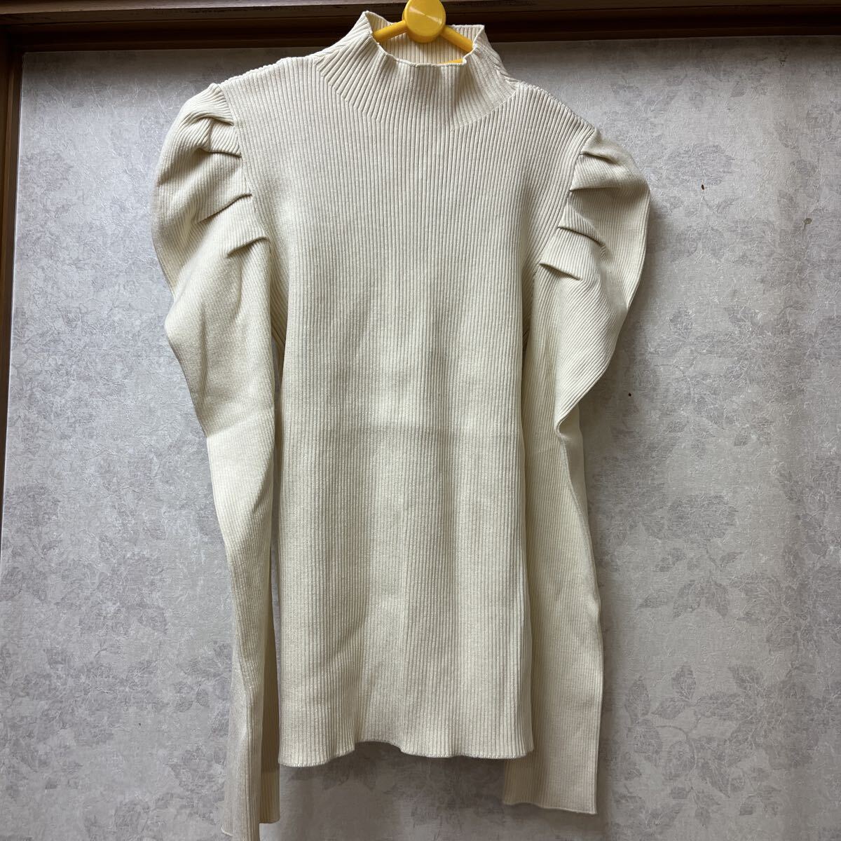 > ★SLY★スライ 長袖 ハイネック カットソー F オフホワイト パフ袖が可愛い レーヨン68%ポリエステル32%