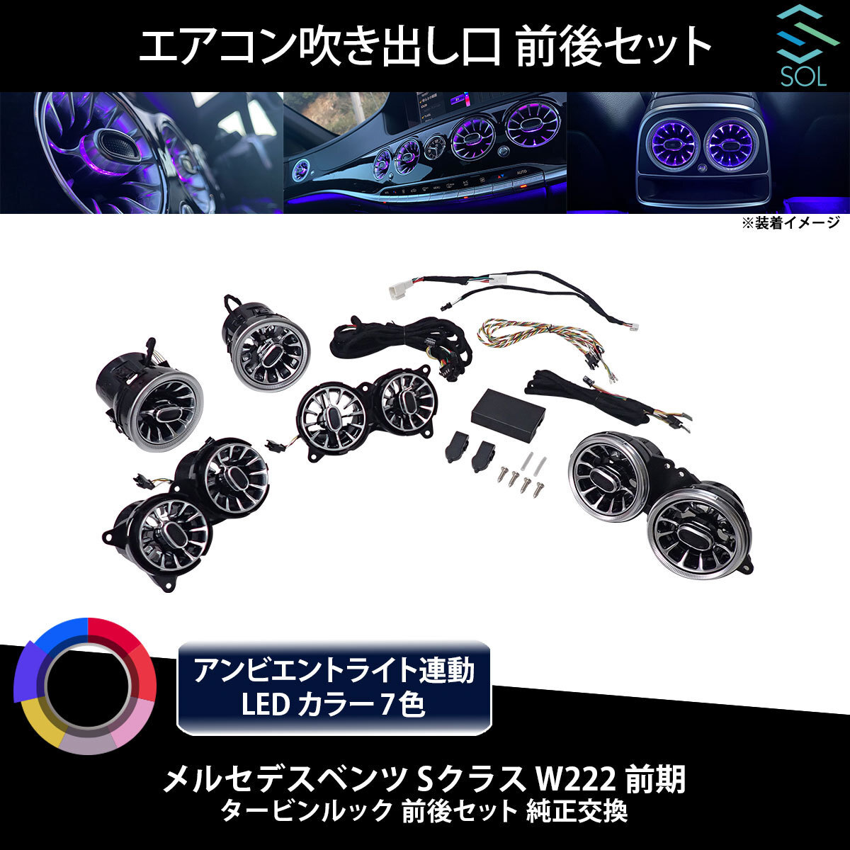 ●商品名タービンルック アンビエントライト連動 エアコン吹き出し口 純正交換タイプ LEDカラー7色 前後セット