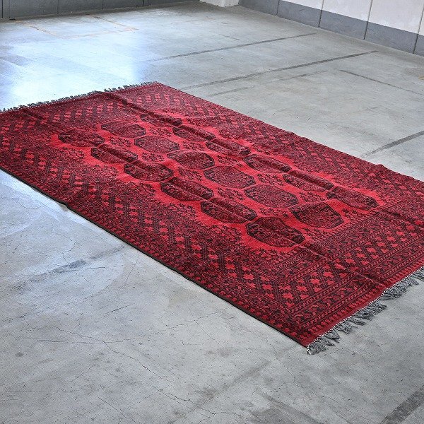 > 新品 未使用 パキスタン製 ブハラ柄 絨毯 手織り 幾何学 ウールラグ カーペット トルクメン風 リビング ホテル 応接室 書斎 緞通 P-18
