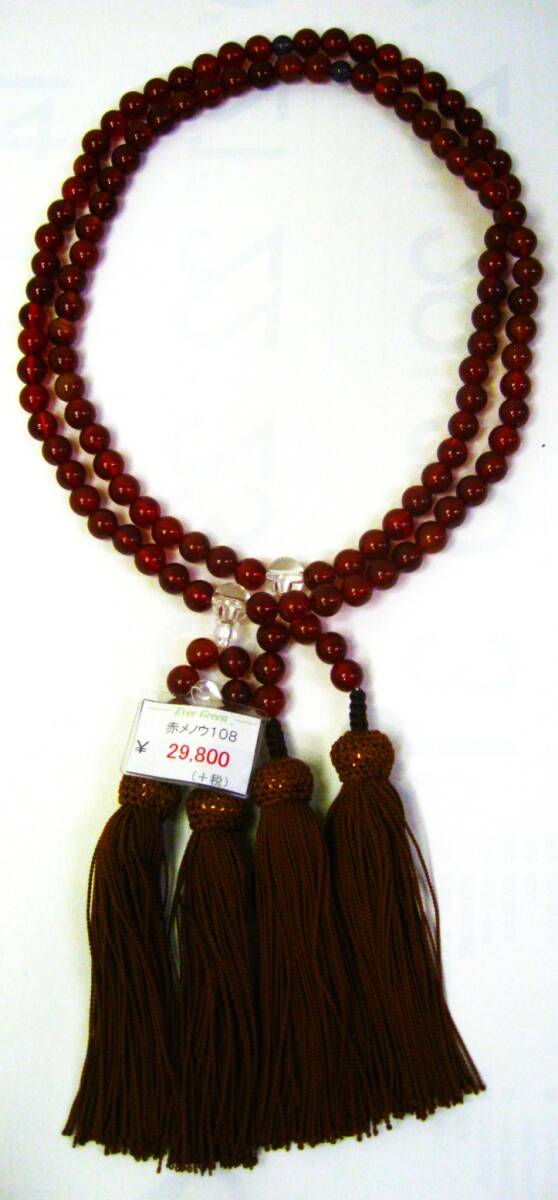 - 【東京 谷中 質屋おぢさん】新品 数珠 赤メノウ ロング43cm水晶入103.7g定価32,780円葬祭法事