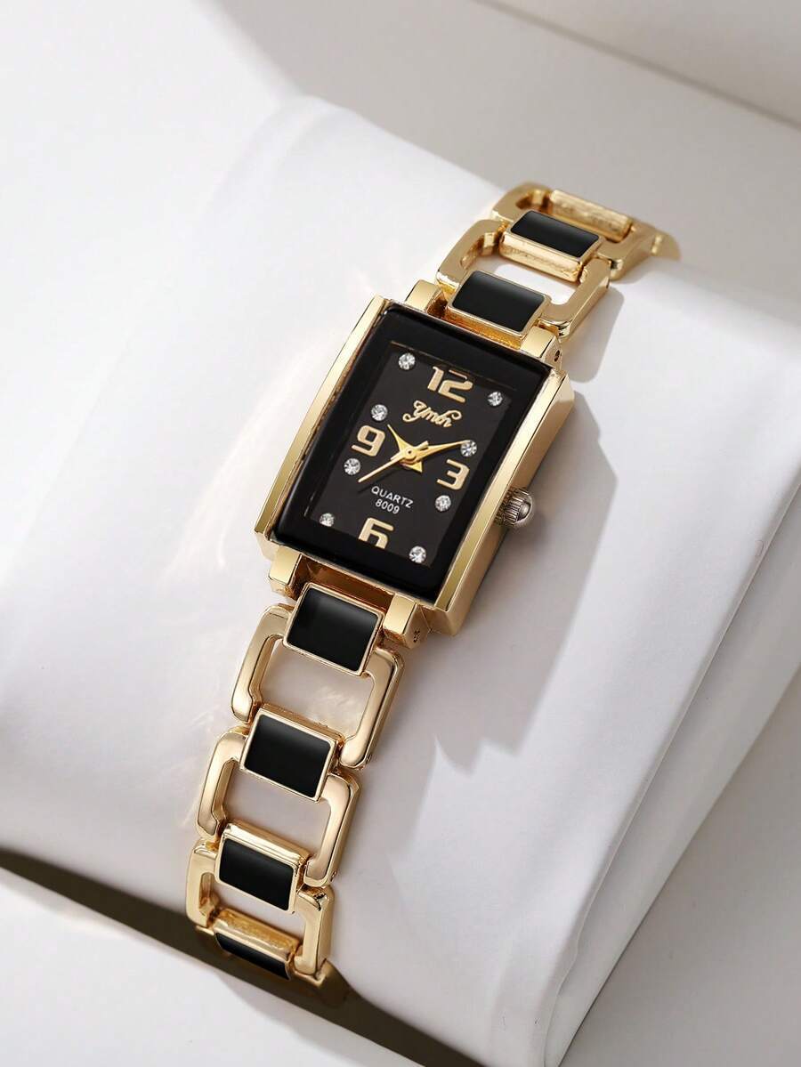 - 腕時計 レディース クォーツ 1個 クラシックファッションメタリックバンド スクエアダイヤル クォーツ腕時計 レディース、ミニマル