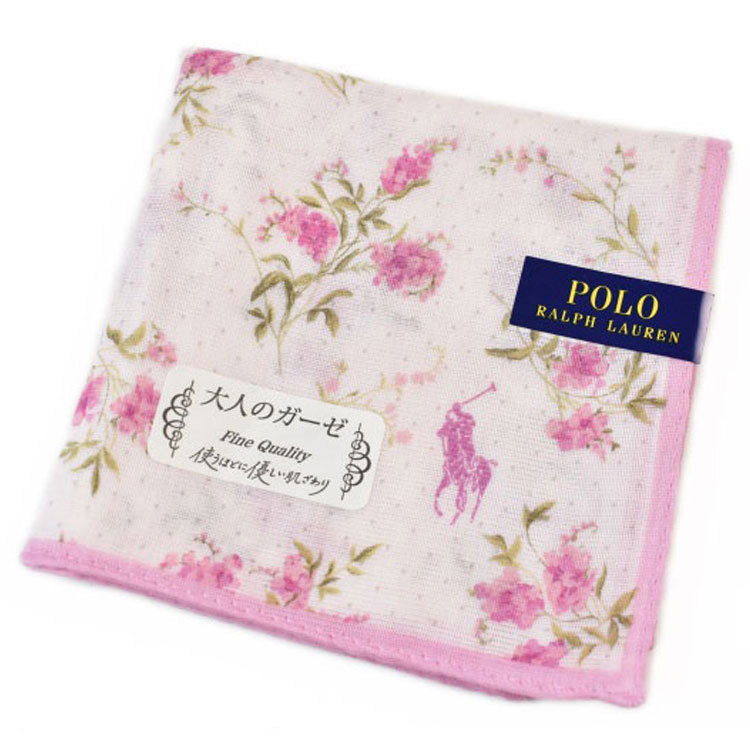 - ハンカチ レディース ポロ ラルフローレン ガーゼ 1枚 ピンク フラワー 花 ピンドット デザイン