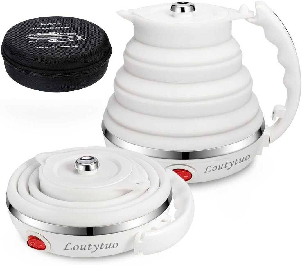 - 超薄型アップグレードされたシリコーン旅行折り畳み式電気ポータブルケトル 折り畳み式 電源コード 555ML 沸騰ドライ保護(収納ボックス付)