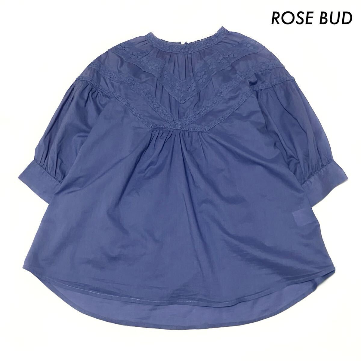 > 【送料無料】ROSE BUD ローズバッド★5分袖ブラウス レース付き ブルー 青