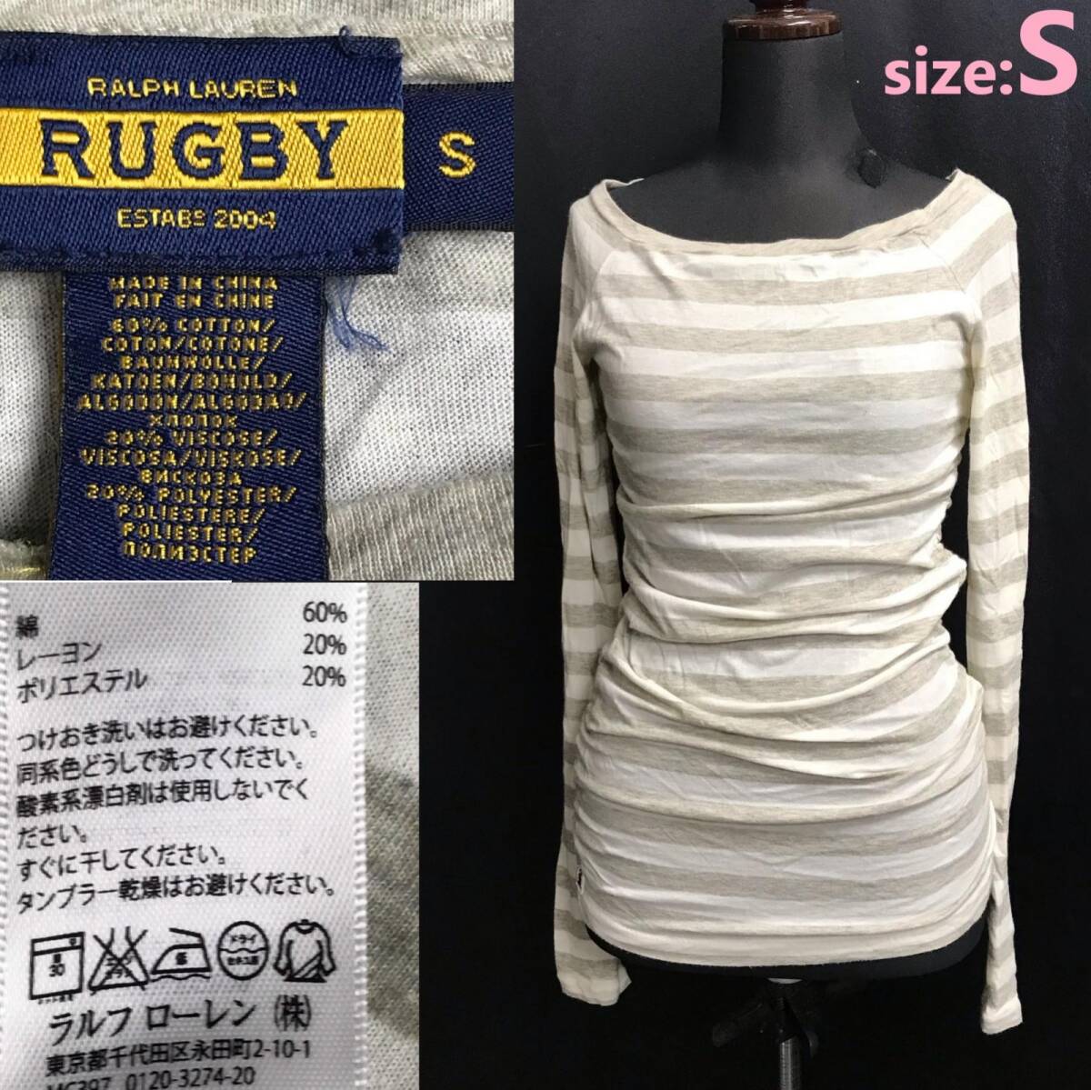 - RALPH LAUREN RUGBY/ラルフローレン★長袖Tシャツ【レディースS/白×グレー/ボーダー】長袖カットソー/ロンT/チュニック/Tops◆BJ086-h