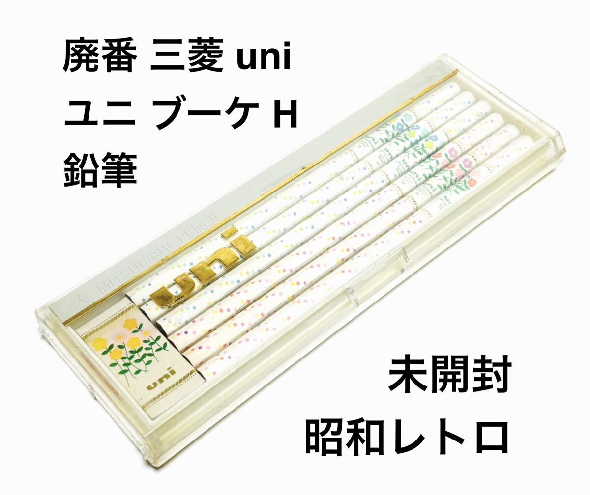 - 廃番 三菱鉛筆 ブーケ 鉛筆 H 1ダース12本 uni ユニ 消しゴム付 パック未開封 パック破れ有 絶版 昭和レトロ 旧JISマーク えんぴつ 当時物