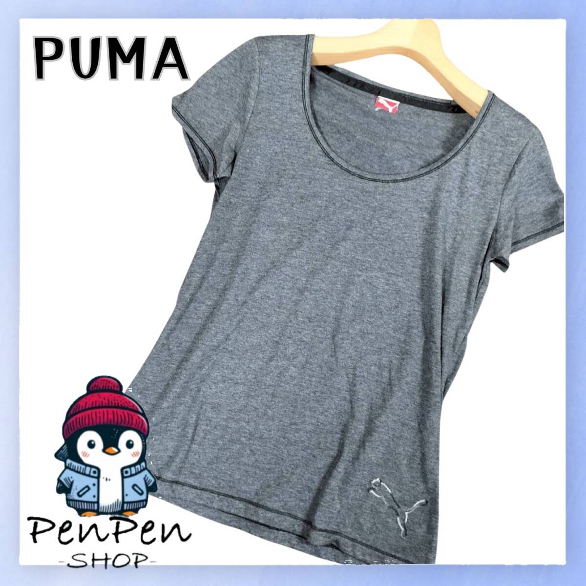 - PUMA プーマ レディース Tシャツ 半袖 グレー 刺繍ロゴ スポーツ カジュアル 吸汗速乾 トレーニング フィットネス Lサイズ