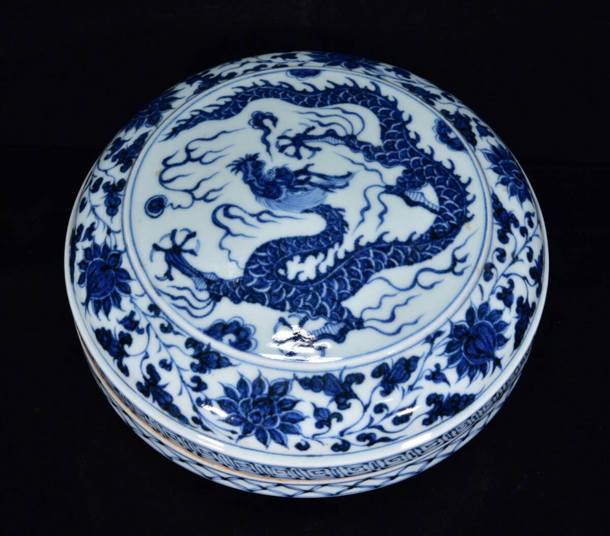 - 『館蔵珍品 元 古陶瓷品 青花 纏枝蓮龍紋 首飾盒』置物 賞物 貴重物品 収蔵品 中国古美術